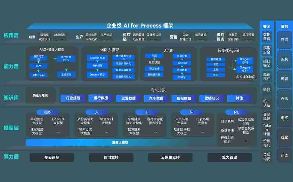 端到端的一站式AI工作空间深度融合了从企业战略规划到日常经营的全流程业务板块,,,,定向解决车企内部领域多、、、部门多、、、链条长、、、、场景碎片化等难题,,,,支持车企快速构建以AI为核心的生产力写作体系,,实现任务执行与AI能力的无缝集成与交互